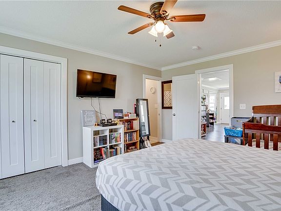 Freshly updated and move-in ready. Walking in from the front door you will have a large living room with new flooring and crown molding. A recently renovated kitchen with quartz countertops, under cabinet lighting, and tile backsplash. Off the kitchen, you have your dining room with a door leading out to your covered deck. For the rest of the main level, you will find a master bedroom with an en-suite bathroom an additional bedroom, and a full bathroom. The basement comes with a third bedroom and egress window, storage, and a half bathroom. The backyard is large with a shed matching your home. Located next to Maytag Park, Maytag Pool, Maytag Bowl, and the stadium. All information obtained from Seller and public records
