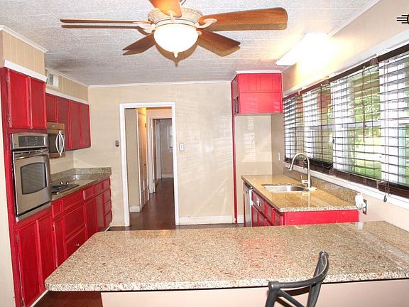 You'll love this charming ranch with lots of gorgeous mature trees in front and back yards, both conveniently equipped with a sprinkler system. This 3 bedroom, 2 bathroom home will give you 2097 sq ft of generous space to move about. Large Eat-in Kitchen has stainless steel appliances and granite countertops, with nice cozy fireplace in Dining Room. Beautiful updated hardwood floors throughout home. Stained concrete floor in Master Bedroom. From spacious Living Room step out to a nice deck and enjoy a spectacular backyard with alley entry and extra rear parking. Finished workshop/mancave perfect for hobbies or entertaining. Come see this unique home for yourself, make an appointment today!
