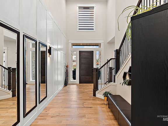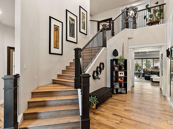 Stunning custom home in Mace River Ranch community. This exclusive neighborhood on Eagle Island boasts mature tree-lined streets, community pool, private ponds for paddle boarding/fishing, paths and direct access to the Greenbelt. This home offers Dual primary suites for entertaining visitors or multigenerational living, featuring one downstairs and one upstairs. The expansive kitchen features top of the line Gaggenau appliances, quartz countertops & walk in pantry. Upstairs has the additional bedrooms, Laundry room off Primary Closet, Bonus/Movie room with Pella slider to the balcony and 7.1V Surround sound. Beautiful flooring includes solid white oak, tile and textured carpet. Solar powered window shades throughout. Dual Water Heaters, circulating hot water system & water softener. Backyard is equipped with built-in patio warmers and an exterior kitchen. The spacious 4-car Garage is 1837SqFt with 220V for shop.