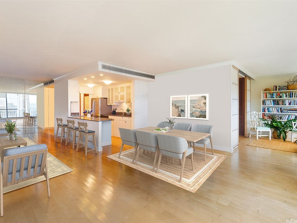 1010 Wilder is one of Honolulu’s most iconic condominiums, celebrated for its classic, elegant design. Nestled on the slopes of Punchbowl, it offers ever-changing, breathtaking views of the Honolulu skyline, Diamond Head, mountains, and ocean. The elevator opens to a private lobby serving only two units, ensuring exclusivity. This spacious two-bedroom, two-bath en-suite residence features an updated kitchen and an enclosed lanai spanning the unit’s front. The open living, dining, kitchen, and library areas are bathed in natural light, creating a warm, welcoming retreat. Escape the stress of downsizing with this lateral move to simplicity and sophistication. The pool area evokes a private estate’s serenity, and the self-managed building is predominantly owner-occupied. Two assigned covered parking spaces add ease to this home. Perfectly convenient to schools, downtown, and Ala Moana, yet a world apart from the bustle. Rarely available, this property combines luxury, lifestyle, and value. Seize this extraordinary opportunity.
