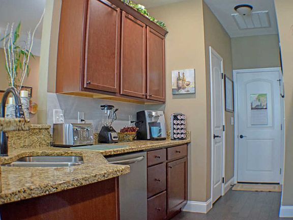 BUY YOUR SLICE OF PARADISE! Beautiful One-Level rancher condo featuring 2 bedrooms / 2 full baths, a nice bonus/office room, and a spacious 2 car garage. The ONLY reason this beautiful condo is not being sold as a 3 bedroom is because one room doesn't have a window, but still has the space and storage of a bedroom! Wonderful open-concept floor plan with all the upgrades to include hand scrapped hardwood flooring, luxurious cabinetry with granite in kitchen AND bathrooms, 9 & 10-foot ceilings, all stainless-steel appliances, oil-rubbed bronze lighting and fixtures. Very low-maintenance living with brick/vinyl exterior, weekly trash pick-up and lawn care included in HOA fees.