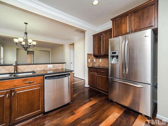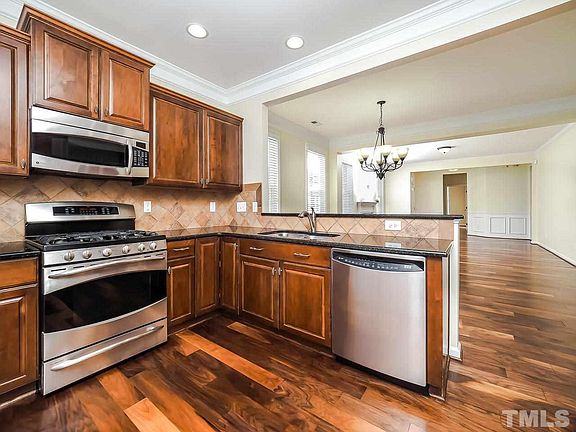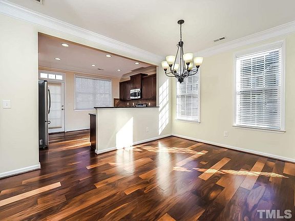 Light filled Lennox at Brier Creek Townhome with First Floor Owner's Suite! Easy living floor plan/two car garage end unit, Master down, 2 bedrooms up, and space galore. Newly finished Walnut floors. All the amenities of Brier Creek, Google Fiber wired, and quick access to 540 and RDU Airport. Fantastic central location can't be beat! HOA includes all exterior maintenance, landscaping, pool and clubhouse.