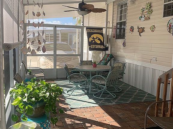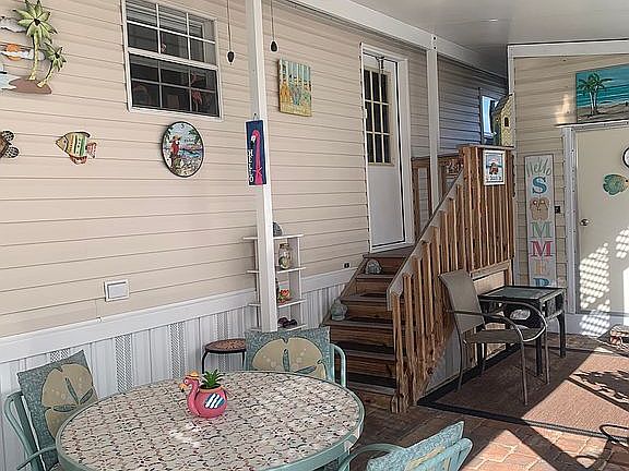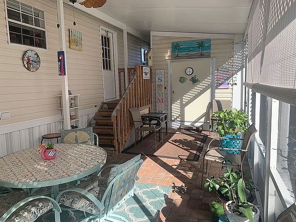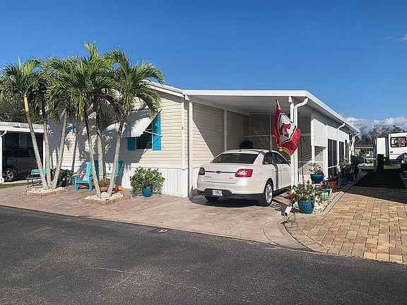Rarely available 3 bedroom 2 bath with vaulted ceilings open concept in River Haven resident owned 55t park. As soon as you drive in you are welcomed by a beautiful pond with fountain and sitting area. Located close to historic downtown Punta Gorda. River Haven offers a community center, caged heated swimming pool, shuffleboard, horseshoe, picknick area, fishing, dog park, boat storage yard, six dock marina, located on Alligator Creek with limited access to Charlotte Harbor. Covered car port with 30x12 lanai and storage shed. AMS metal roof installed 2019 water heater 2020. Land is resident owned and requires 10 shares at $1,000 each with entire amount to be refunded should a new buyer sell the property in the future. Maintenance fees are $250.00 monthly which includes water, sewer, and garbage collection.