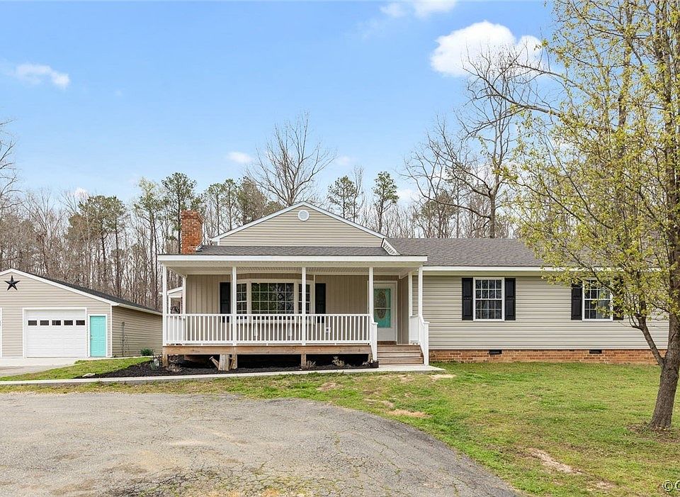 This property has so much to offer. Updated home on almost 6 acres of private property in Chesterfield. The house welcomes you with the wide front & side porches. HUGE family room with new luxury vinyl plank flooring, vaulted ceiling, wood burning fireplace. Laundry/mudroom with half bath. Large kitchen with pantry, stainless appliances and eat in area. The owners suite is a private oasis just up a few stairs and has its own private bath & walk in closet. The 3 guest bedrooms are located off a long hallway on the first floor and are spacious and share an updated hall bath. There are 2 detached garages one with 2 bays & the other is large enough to fit a lift and has a loft area above. The inground pool has a new liner and pump/equipment, sliding board. There is also a whole house generator. You will love feeling like you are in the country but still only 10 minutes to Hull Street Road.