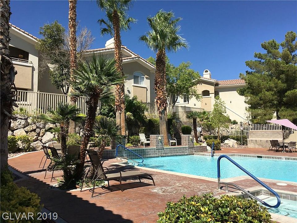 Resort-style condo in Summerlin! Mountain and Strip views from the balcony. Two bedrooms each with an attached bath. One car garage. All appliances included. Second-floor unit. Resort-like community Pool and clubhouse. Fitness room. Newly installed vinyl plank flooring. Beautiful community with lush grounds. Great location near Downtown Summerlin, Tivoli Village, and Boca Park. Turn Key!