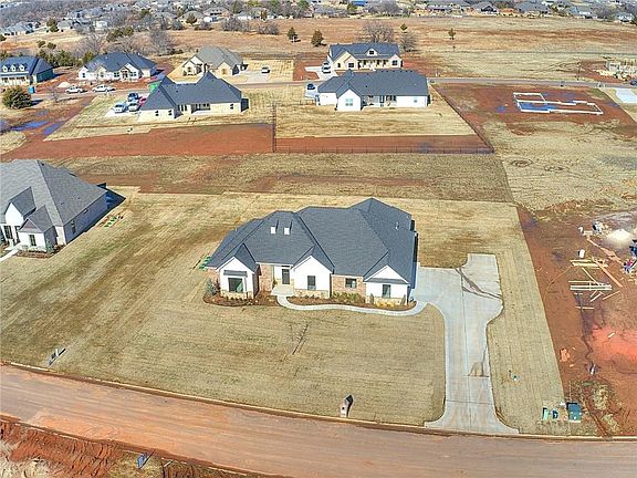 QUALITY construction is what you will find in this stunning new home! Sitting on 3/4 acre lot, Deer Creek Schools, Logan County Taxes & Edmond address. This home has it all including oversized, 3 car garage! You will LOVE the 3 or 4 bedrooms, Study and 2.5 bath floor plan! Huge, vaulted great room in the center of home leads to a large outdoor living area with OUTDOOR FIREPLACE. Formal Dining as well as a breakfast nook off the kitchen overlooking covered, back patio. Designated Study OR 4th bedroom with ample closets as well! Master bedroom will include bay window sitting area, his & hers spa-like bath and huge closets! Kitchen hosts a 48x84 Island and all the amenities of your dream kitchen! Tons of storage & custom finishes throughout! Full guttering and downspouts. Large lot with sprinkler system and allow up to 30x40 shops - ask for details! Community Pond are scheduled for phase II. $6000 builder incentive for closing costs/upgrades! This one is a MUST SEE and Ready to Move In!