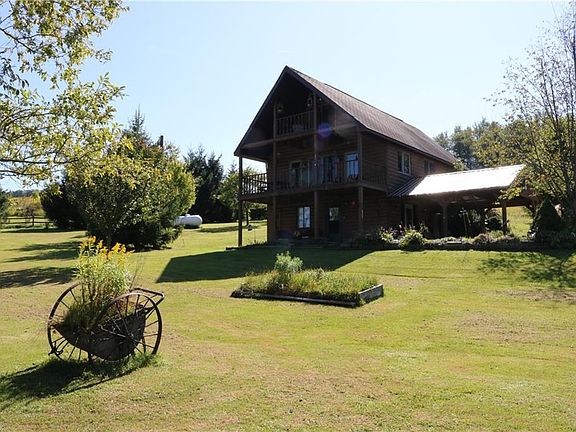 Pull into the carport out of the weather & enter into a family room/office w/ T/G ceilings w/ a concrete patio to the left. To the right is the basement storage & utility room. This level has radiant floor heat. Up the stairs you are into the eat in kitchen w/ plenty of cupboard space, living room with an elec fireplace, french doors to the covered deck, 3/4 bath, laundry area w/ 2 additional closets & door to the front deck. Views all around & heated floors again. Up to the 3rd level is a bedroom to the right w/ slider to the deck, half bath & another area that can be a 2nd bedroom. There is a barn, heated workshop, gazebo, pond and plenty of open space. Bring the animals with room for some beef or horses. Randolph Schools. Built by owner & ready for the next to make it theirs!