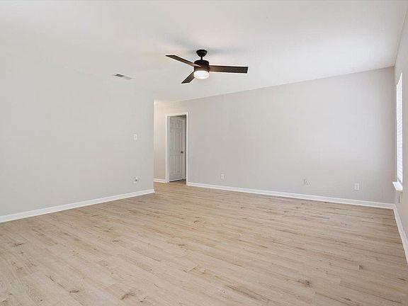 Recent renovation includes: new kitchen cabinets, kitchen quartz counters, light wood finished floors, stainless steel appliances including over the range microwave, kitchen tile backsplash. Renovated bathroom turned into walk-in shower with glass door, fresh interior and exterior paint, HVAC is only 3yr old, ample laundry room. All rooms and living area have recently replaced ceiling fans, large backyard includes good size storage.