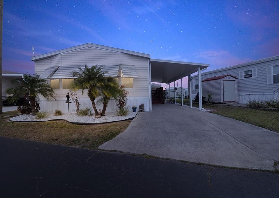 Here is your opportunity to own a 2005 doublewide in Parkhill Estates! This 2-bedroom, 2 bathroom, 1056 square feet home has newer laminate flooring in the main areas and carpet in the bedrooms. There is a walk-in shower in the master bathroom and a tub/shower in the guest bathroom. The kitchen has plenty of place for your kitchen essentials. In the carport area, there is a deck for you to enjoy and watch those Florida Sunsets. An 8x10 shed is staying and conveys with the home. The AC unit was just replaced in March 2023. The roof was redone in 2019. The water heater is newer too. Parkhill is a co op. You have to buy 5 shares minimum at $1000 a piece to get into the park. The more shares you buy, the lower the HOA is. Parkhill does not allow pets except service animals. From this location, you are near shopping, restaurants, and downtown Punta Gorda. Come checkout this manufactured home today, before it is gone!