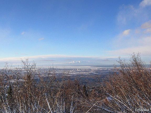 Truly spectacular views from Denali to Aleutian Range. Dramatic open floor plan w/vaulted ceilings, walls of windows, over sized master suite w/gas fp on main floor, every bedroom has private bath, family room downstairs w/in floor radiant heat, expansive decking to enjoy the views plus separate MIL apt on 2.22 private acres. Close access to Prospect Heights Trails/Chugach State Park