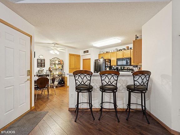 Exceptional one-level living in a peaceful 55+ community in Albertville! This open and spacious layout features vaulted ceilings, a primary suite with walk-in closet and private bath, and a laundry room with a sink and an additional fridge—all appliances included. The kitchen offers ample cabinet space and a cozy breakfast nook by the window, while the oversized dining and living room provides the perfect space to gather and entertain. Enjoy a sunroom/living room with a gas fireplace, west-facing light, and direct access to a private back patio. Tucked away at the rear of the community, this unit offers rare privacy with no neighbors behind—just mature trees and peaceful views of open farm fields that stretch for miles. The garage includes attic storage and extra space behind the laundry room. A must-see home that combines comfort, function, and a serene setting!