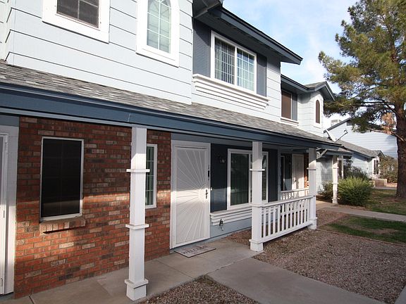 Not the typical home, many upgrades, well worth the price. Do not Miss this gorgeous remodeled two-bedroom townhome located in popular Peoria! This unit has been updated throughout. It boasts a large great room, separate dining area, an amazing kitchen with granite countertops and plenty of cabinet space. The unit has High ceilings and a large spacious master, a second spacious bedroom and two full bathrooms upstairs including a double sink in the master both with beautiful granite vanities. There is a third guest bathroom downstairs with a washer and dryer included. Has plenty of space including a nice private patio area. It's close to many of Peoria's amazing amenities including Arrowhead, and the Cardinals Stadium. Small pet allowed with non-refundable pet fee.