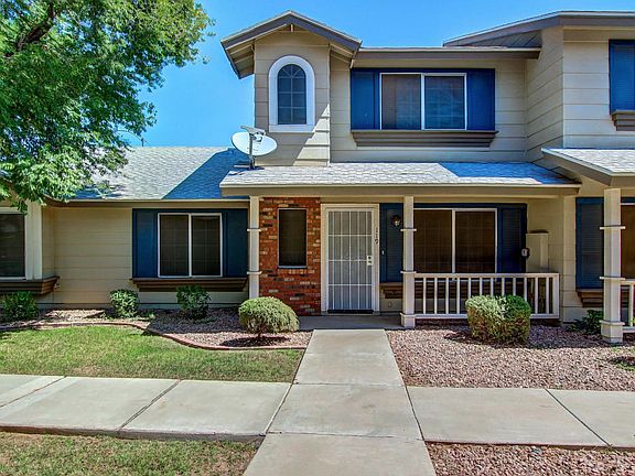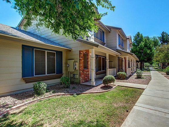 Your home sweet home has arrived in this great townhome in Peoria! Warm wall tones and neutral flooring throughout. Kitchen is complete with breakfast bar, plenty of custom cabinets, and stainless steel appliances. Large master suite has plush carpet with ceiling fan and picture windows. Full bathroom with double sink vanity. Backyard features a patio with room for entertaining or lounging! This home is sure to go quick, so come see it today!