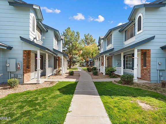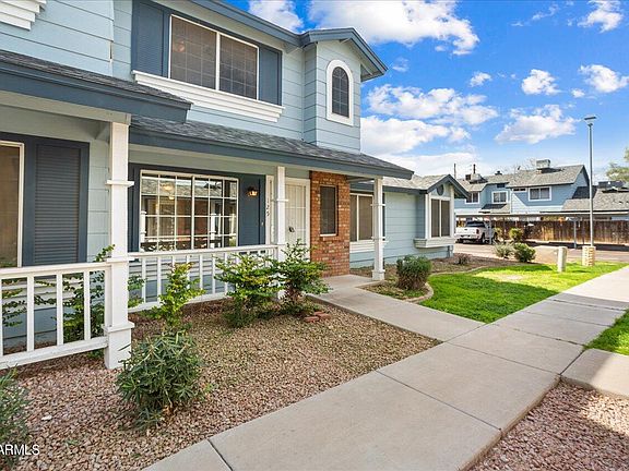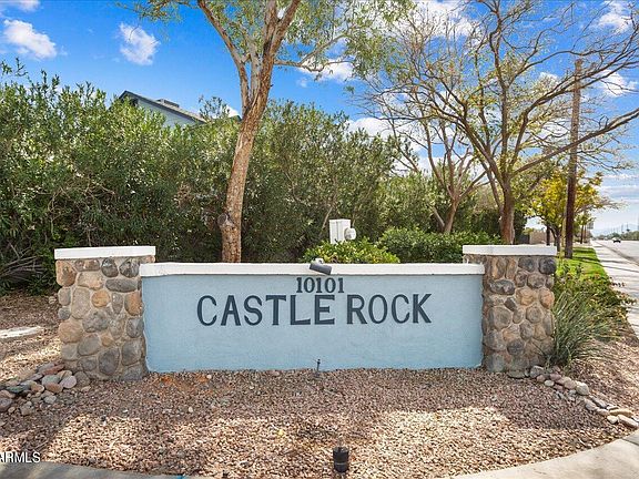 Enjoy the benefits of home ownership in this 2-story Townhouse in Castle Rock. This 2 bed / 2.5 bath home has been freshly painted throughout along with NEW carpet upstairs and down. The home offers your own private fenced-in back patio with a retractable awing for relaxing outside. NEW front door and security door, new ceiling fans are among some of the updates you will find. A vaulted ceiling in the owner's suite provides an open nighttime oasis. The HVAC unit was replaced in 2012. This convenient location provides for EZ access to Route 101 & Route 60, State Farm Stadium, the Glendale Sports & Entertainment District, Shopping and Restaurants. You will find a Castle Rock Resident ONLY Community Pool for swimming and sunbathing. You are going to love this fresh, clean townhouse!