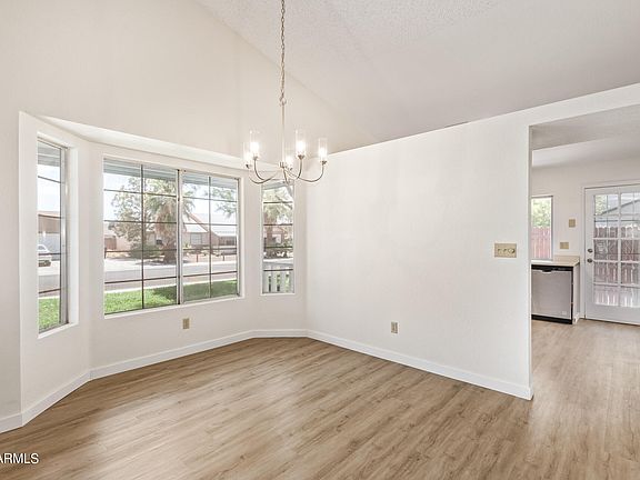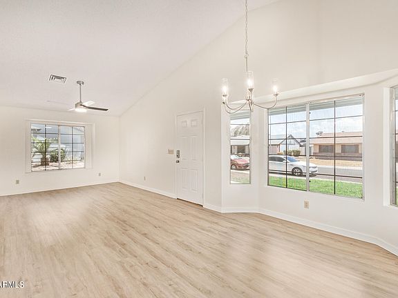 Welcome home to this gorgeous single level condo in Peoria! Vaulted ceilings make this beauty feel so spacious! The family room and dining area with bay window are light and bright. The kitchen has freshly painted cabinets and new SS appliances. There is a French door leading out to your lovely yard with turf. Primary suite boasts large closet and private en-suite. All new interior paint, LVP, plush carpet, baseboards, fixtures, etc. All this and a community pool! A MUST SEE! List of improvements