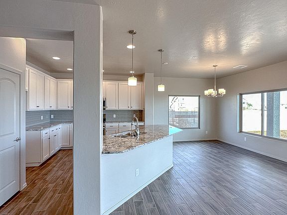 Located in the Desirable Kings Ranch Community in Hereford. 3br/2ba/3car garage, 1804 sqft on approx. 1.21 acres. Featuring; wood-look floor tile, Off-White Painted Shaker soft close cabinets with 42'' uppers, hardware, & granite counters. Under cabinet lighting, pendant lighting subway style tile backsplash, stainless appliances, and base lazy susan. Baths include tile surrounds, executive height vanities and rectangle sinks. Master bath features a walk-in shower w/ 24x16 niche & soaking tub. Interior features additional can lighting, prep for wall mount tv, ceiling fan pre-wires and cable jacks throughout. Garage includes soft water loop, 8' garage doors, refrigerator outlet and pedestrian door. EnergyStar & Environments for Living Certified Home.