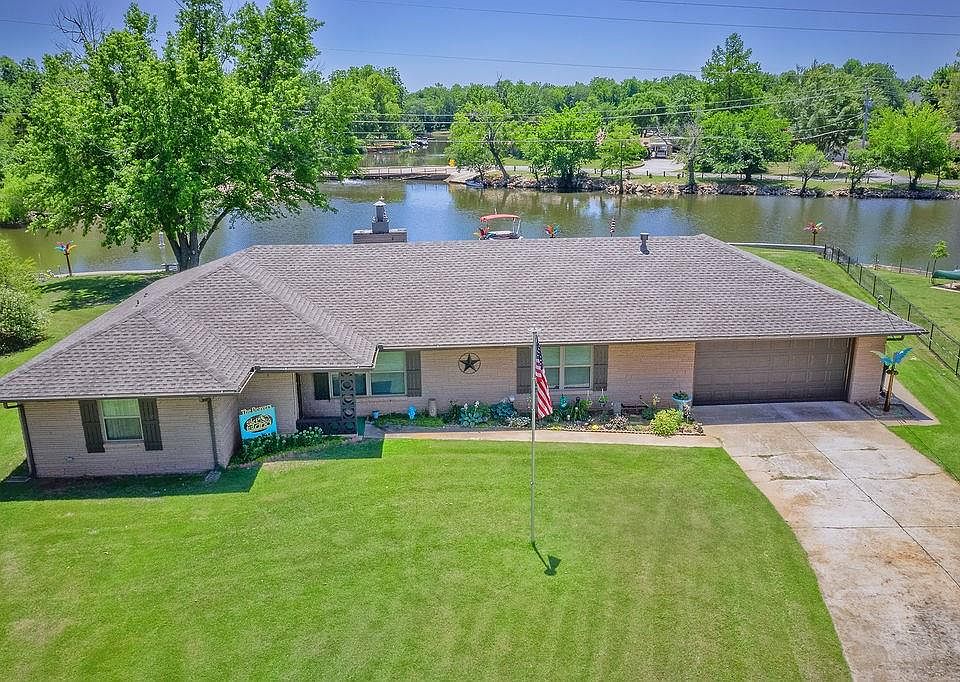 Discover Ski Dr and the panoramic lake view of your dreams! Charming 3 bed home, mil plan with 2.1 baths. Living/dining room with gas log fireplace. The den features a wall of windows overlooking the lake. Terrific covered patio off the kitchen. Master suite features 2 closets and bathroom with shower. Guest bedroom with access to hall bathroom. The mil bedroom is off the kitchen and has a separate exterior door. Great floor plan for entertaining family and friends! Imagine beautiful lake front evenings. The kitchen has been totally updated with flooring, cabinets, pantry, counters, lighting, appliances and back splash. Electrical updates. HVAC 2018, roof 2019, windows 2019, partial sea wall 2019. Sewer line replaced in 2014. 3 Frost free exterior faucets . Don't miss this terrific opportunity to live on a lake in the middle of OKC!