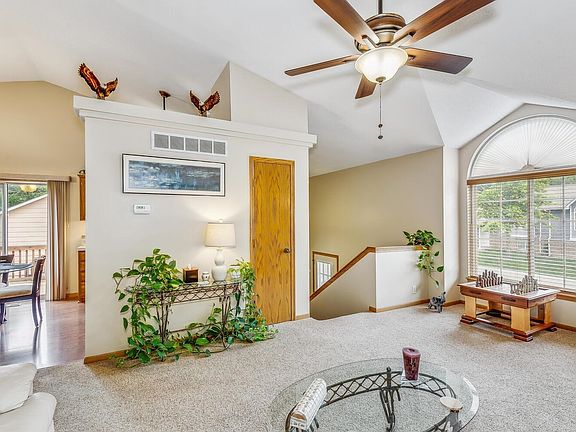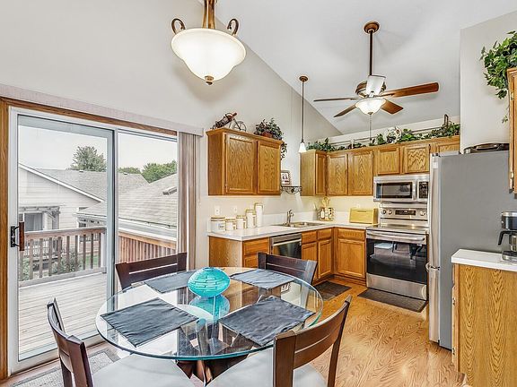 Set on a picturesque cul-de-sac between rows of trees, this 3 bedroom, 2 bath bi-level home is move-in ready! The welcoming floor plan boasts vaulted ceilings, spacious living room, ample kitchen with an eating space, master bedroom with a walk-in closet and a full bathroom with a walk-in shower. The view out lower level features a great living space with a wood burning brick fireplace, 2 bedrooms, a full bath with an onyx surrounded tub/shower & a laundry room. Enjoy the outdoors from the deck overlooking the tree row where deer are frequently spotted! For some shade use the retractable Sunsetter awning. This home boasts easy living where the lawn, snow removal and exterior painting are maintained for you! Also, close to Pawnee Prairie Park with nature trails.
