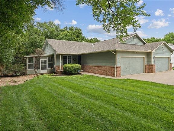 Amazing town house in the Goddard School System. This 3 bedroom 2 bath house with a 2 car garage is nestled at the end of a quiet cul de sac in west Wichita. The main floor features two bedrooms, one bath and main floor laundry. The main floor living room opens up to a secluded covered porch perfect for relaxing. The kitchen features a dining area, desk, pantry and skylight. The downstairs has a nice size family room, bedroom, bathroom and two separate storage areas. One storage area has a built in work bench and a utility sink. The home is a short walk to Pawnee Prairie Park. The Home Owners Association is privately owned by the home owners that live there. The home owner dues cover exterior painting, snow removal, mowing, sprinkler system and irrigation well maintenance for the residents. These homes don't come up for sell often. Dont miss this opportunity.