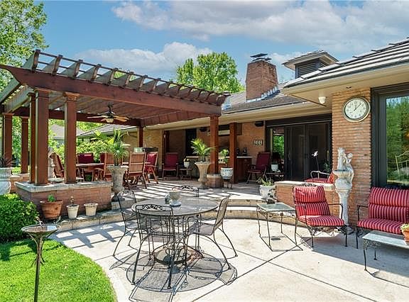 Classic, well maintained Leawood Estates ranch home on GORGEOUS .71 acre lot. The main floor features large formal living and dining rooms-great for entertaining as well as a bright and cherry family room with built ins and fireplace. Glass doors walk out to beautiful tiled patio with custom built pergola and outdoor kitchen complete with Viking grill and smoker, hood and sink. Great place to relax with friends and enjoy the terraced expansive back yard. The HUGE lower level has so much to offer! Home office complete with built in desk and credenza hard wired for internet, kitchenette, 2nd family room for movie night, 3/4 bath, safe room with dedicated alarm and security camera, large work shop with hobby tables wired for electricity, and storage for days! Other upgrades include: new Marvin windows throughout, full sized genetator, 50 year concrete roof, metal estate style fence, custom lighting throughout.