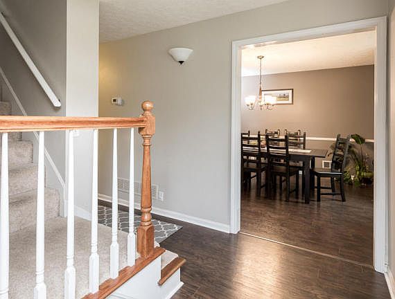 Beautiful two story home in Foxboro that offers both a convenient location and great interior space for living. This home has both a large great room in the front and a rear living room with fireplace and bookshelf surround. The seller has installed beautiful wood laminate flooring through these rooms as well as the formal dining room and entry. The eat-in kitchen has white cabinets and space for a small breakfast table. The half bath on the main floor has a newer bathroom vanity and just installed white-tile flooring. Upstairs you will find three spare bedrooms that share a full bath in the hall. The full bathroom has a white tile tub surround, linen closet, new bathroom vanity and tile flooring. The master bedroom is a great size with a large closet and ensuite full bath and dressing vanity space. The basement remains unfinished and has great potential for adding extra space-if you need it. The rear yard has an amazing play yard and rear patio for relaxing this fall. Come take a look at this home at 10102 Clearcreek Way and find your next home! Call for a private showing today.