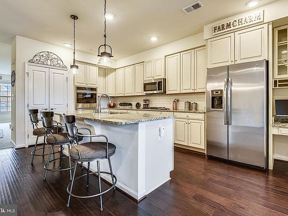 Extraordinary three-level end unit town home in highly sought-after Glenn Dale Crossing! Built in 2017, this stylish energy efficient residence features three bedrooms, two full bathrooms, and a powder room. This well-designed and maintained home provides open living space, high ceilings, recessed lighting, engineered wood flooring, outdoor space and a garage - this property shows like a model. The main level offers a light-filled living room, an open dining room with a chandelier, and a sun-drenched family room with a gas fireplace that opens to the chef's kitchen. The large gourmet kitchen features granite countertops, GE stainless steel appliances, an expansive center island / breakfast bar, pantry, built-in desk, and access to a covered balcony. Upstairs are three oversized bedrooms, two full bathrooms, and the convenience of an upstairs laundry room with built-in cabinetry. The primary suite has two large walk-in closets, and a luxury bathroom with a corner soaking tub and two granite vanities. The entry level provides access to the garage. Glenn Dale Crossing boasts play areas, picnic areas with grills, a pavilion, community garden, and scenic walking trails! One cannot beat this location's easy access to major commuting routes (BWI Parkway and I-495), shopping, BWI and DCA Airports, and wonderful dining options. Convenient to Baltimore, Washington, DC and Annapolis!