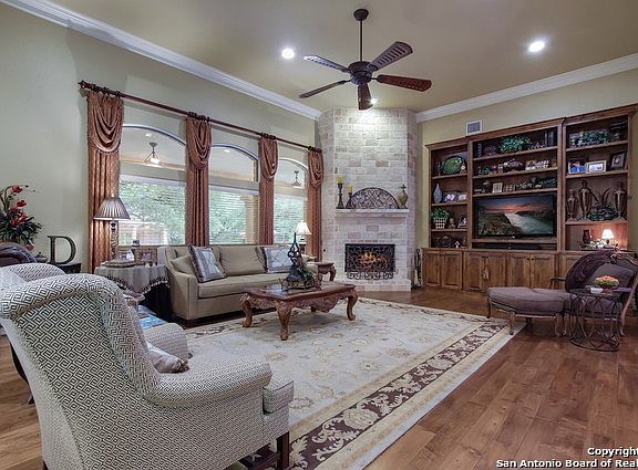 Beautiful 1 story Custom Home with bonus room upstairs. New stainless appliances in kitchen. Custom built-in cabinetry throughout house. Tile and wood flooring, granite counters,indoor/outdoor sound system. Beautifully landscaped backyard with pool,waterfall, and outdoor kitchen. Main house has 4 bedrooms,4.5 bath,and Guest house has full bathroom, 1 bedroom, full kitchen and living area.Landscape lighting and outdoor theatre system. Mirrored 3rd car bay can be used as a workout room. This home has it all.