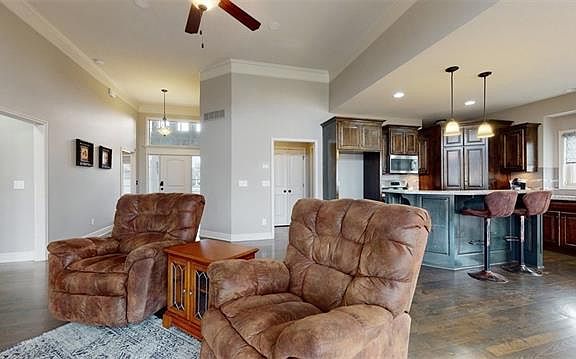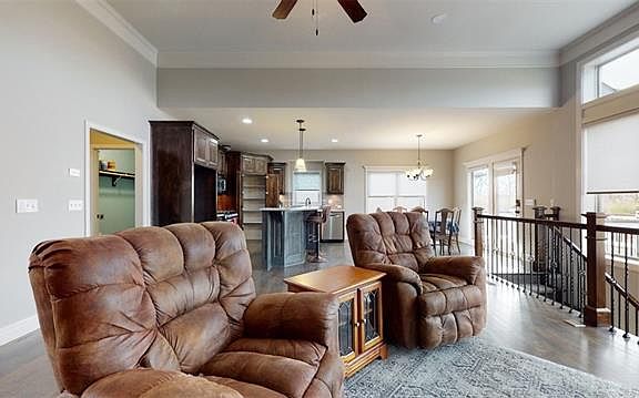 - Ceiling Fan(s), Custom Cabinets, Kitchen Island, Pantry, Vaulted Ceiling(s), Walk-In Closet(s)