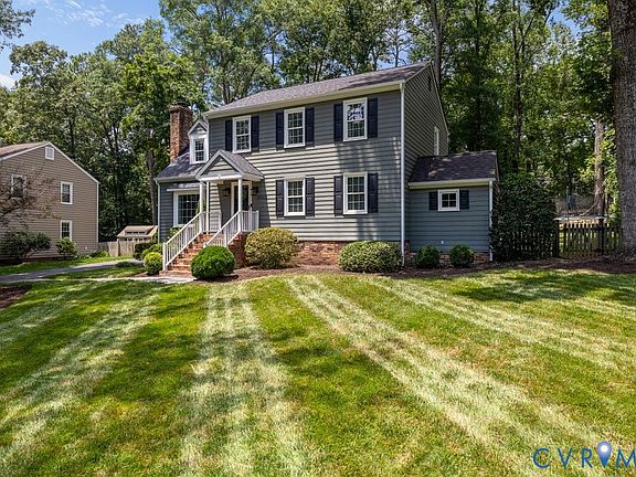 Welcome to 10102 Windsong Terrace, a beautifully maintained 4-bedroom, 2.5-bath home on a private lot in the desirable Raintree community. This spacious property offers a perfect blend of comfort, updates, and timeless charm.The renovated kitchen features granite countertops, abundant counter space, electric cooking, recessed lighting, and crown molding, creating an ideal space for everyday meals and entertaining. Enjoy casual dining in the sunny breakfast area or host formal gatherings in the separate dining room. The family room boasts refinished hardwood floors, a brick wood-burning fireplace, and direct access to the back deck and yard. The carpeted front living room, filled with natural light, is currently a playroom, offering versatile space to fit your needs. A conveniently located half bath on the first floor has been updated with a new vanity and modern finishes. Upstairs, the spacious primary suite includes hardwood floors, a generous closet, and a renovated en-suite bath with double vanities. Three additional bedrooms offer great closet space, new carpet, and share an updated hall bath. The exterior features manicured landscaping, an organic garden, a paved driveway, and attached and detached storage. The spacious back deck is perfect for grilling, entertaining, or relaxing. A playset conveying with the home adds value. Nestled in Raintree, residents enjoy scenic walking trails, a tranquil pond, and optional membership to the Raintree Swim and Racquet Club. This location is minutes from Deep Run Park, Short Pump Town Center, highways, and zoned for top-rated schools including Godwin High. Additional updates include new flooring throughout (2024), HVAC system (2018), replacement windows, roof (2021), gutters, and a vapor barrier in the crawlspace. This is a rare opportunity to own a move-in-ready home in one of Henrico’s most sought-after neighborhoods!