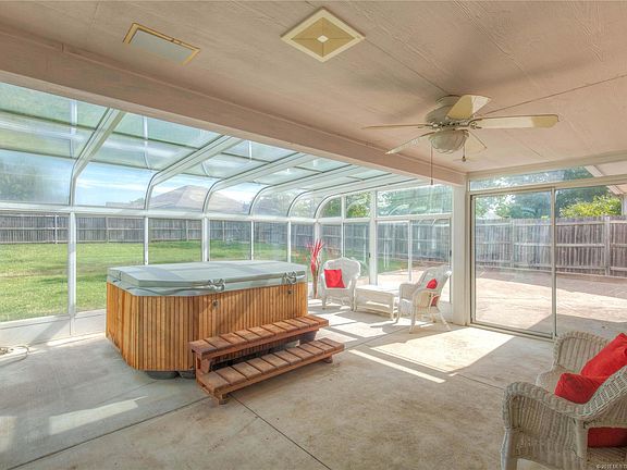This well-maintained house is located on nice and quiet Subdivision - the South side of Bailey Ranch Golf Course. Half a mile from Owasso lake, walking distance from School, close to Main Str. Split floor plan w/ spacious master and large closet on one side & the other beds w/walk ins on the other. Open, vaulted living room with a fireplace. New flooring. Beautiful Sunroom with a hot tub. Wired sound system in Living & Florida, plus bonus room from 1/4 of the garage. Rare to find!