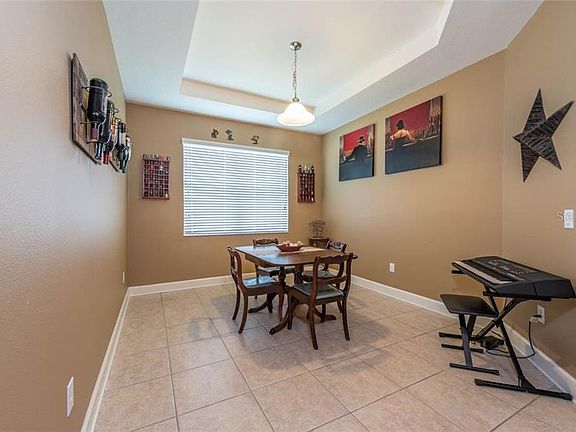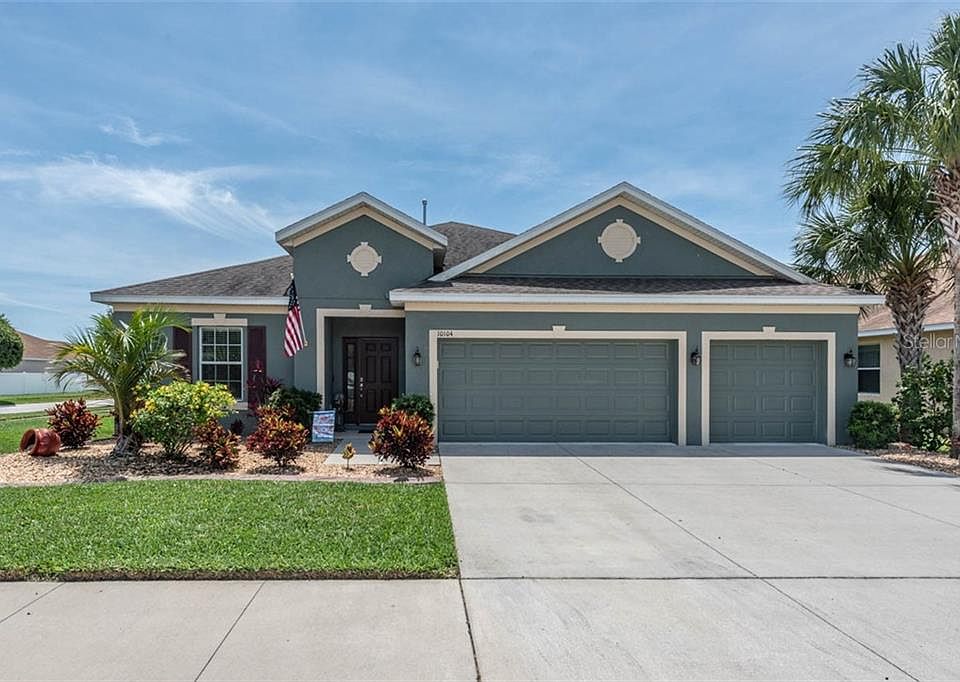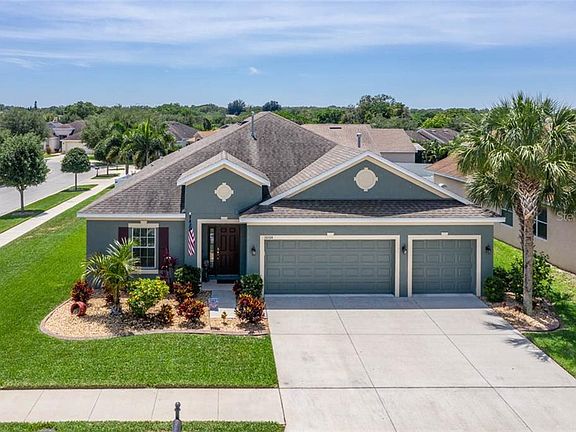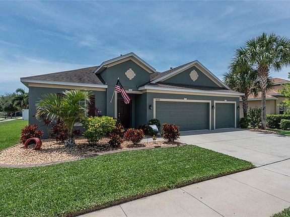 ABSOLUTELY IMMACULATE HOME! This highly sought after Emerson floor plan by Taylor Morrison is nestled away in the quiet, desirable community of Avelar Creek. Situated on a corner lot, the single level floor plan spreads over 2,800 sq. ft., boasting 4 bedrooms, 3 full baths & 3 car garage. Spacious & open kitchen is a chef's dream & features 42" wood cabinets, beautiful granite counter tops, & stainless steel appliances, including gas range! This sprawling floor plan is ideal for entertaining or just enjoying quality time at home. Built-in surround sound and dimmable lighting in the family room is perfect for movie nights. Ceramic Tile & freshly cleaned carpet span throughout the house. Master Suite will leave you wanting for nothing, complete with two walk in closets & beautiful Master Bath with double vanity, jetted tub & walk in shower. The guest bedroom with private bath at the front of the house is perfect for family and guests that visit, providing ample space, seclusion & privacy. True split floor plan, with two additional bedrooms & one full bath. Natural light floods into the living space through the triple sliding glass doors that collapse & open up to the covered, screened in lanai. Manicured backyard boasting multiple palm trees provides you with your own private oasis to spend quiet evenings. This gorgeous home will not last long!