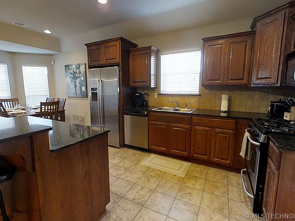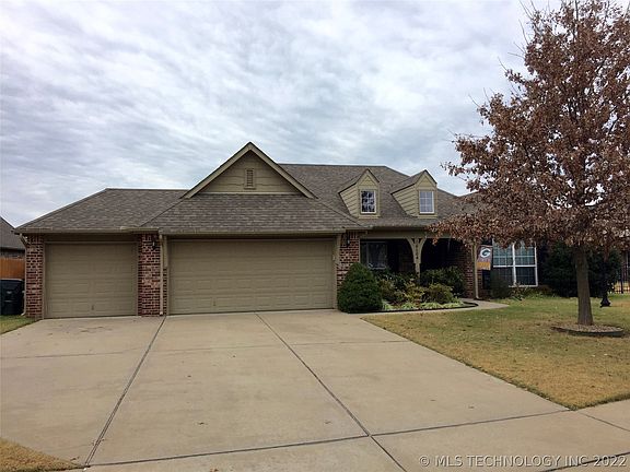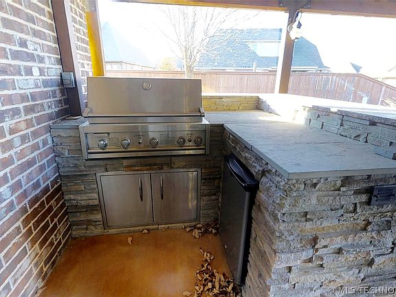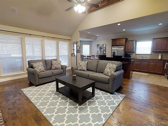 GORGEOUS home in Owasso! 4 bed/2 bath on large lot. Beautiful vaulted ceilings with wood beams. Nice outdoor kitchen with fireplace and grill and bar! Open floor plan, master bath with his and her vanities, hand scraped wood floors.