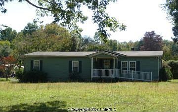 Let your imagination go wild while you are viewing this 4-acre, 3 BR-2 BA double wide on a permanent foundation..An in-ground pool in a fenced-in area.Level lot is off Rt.3, approximately 12 miles straight shot to I-95..Yet, it will feel like living in the country!!THIS IS A FANNIE MAE HOMEPATH PROPERTY.THIS PROPERTY IS APPROVED FOR HOMEPATH RENOVATION MORT-CALL FOR DETAILS Property Features Location Information County: SPOTSYLVANIA Latitude: 38.313868 Longitude: -77.683681 Subdivision: NONE Directions: FROM I-95 WEST, PAST RT. 621 (ORANGE PLANK RD.), DO A U-TURN AT LAUREL HILL FUNERAL HOME ONTO 3 EAST TO HOME ON RIGHT Interior Features Additional Rooms: Bedroom-Second, Bedroom-Third, Kitchen, Family Rm, Bedroom-First Room List: Bedroom-Second, Bedroom-Third, Kitchen, Family Rm, Bedroom-First Dining/Kitchen Description: Liv-Din Combo Amenities: FP Mantels, W/W Carpeting, Washer/Dryer Hookup Has Fireplace: Yes Number of Fireplaces: 1 Heating: Heat Pump(s) Heating Fuel: Electric Cooling: Central A/C Water Heater: Electric Disabled Features: None Appliances: Oven/Range-Electric Has Basement: No Exterior Features Style: Rambler Stories: 1 Is New Construction: No Exterior: Vinyl Siding Possession: Settlement Septic or Sewer: Septic Water: Well Parking Description: Surface Has Garage: No Garage Spaces: 0 Has a Pool: Yes Lot Size in Acres: 4.05 Lot Size in Sq. Ft.: 176418 Zoning: RU Has Waterfront: No School High School: RIVERBEND Elementary School: BROCK Jr. High School: NI RIVER High School: RIVERBEND Additional Information Property Type: SFR Property SubType: Double Wide Is Co-Op?: No Year Built: 1984 Status: Pending Is a Foreclosure: Yes Home Owners Association: N Tax Year: 2010 Listing Agent: Ann Nicholas Coldwell Banker Elite (540) 548-2220 ? 2011 Metropolitan Regional Information Systems. All rights reserved. Information Deemed Reliable, but Not Guaranteed. The property information being provided is for consumers' personal, non-commercial use and may not be used for any purpose other than to identify prospective properties consumers may be interested in purchasing. The listing information provided on this website comes from various brokers who participate in the Metropolitan Regional Information Systems IDX program. Updated on March 12, 2011