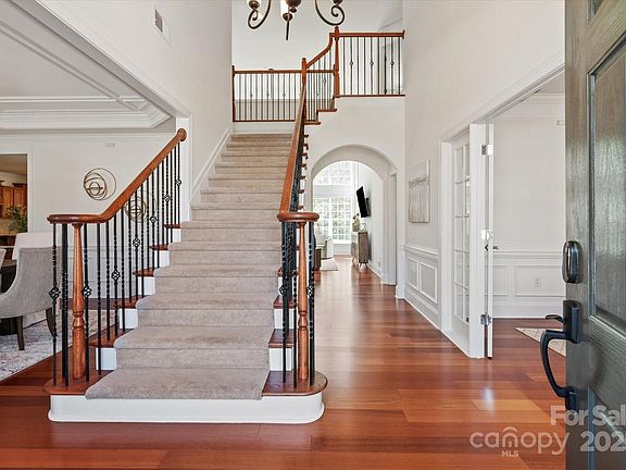 Stunning, move in ready Evanshire model in the highly desirable Chimneys of Marvin. Beautiful, private & flat lot that backs up to woods. Oversized custom covered porch with fireplace and plenty of room for entertaining. First floor dedicated office, dining and guest suite with access to a full bath. Open concept gourmet kitchen & 2 story great room with fireplace. Plenty of cabinets with center island, ss steel appliances, granite counters & computer niche. 2nd floor primary features a separate flex space, perfect for an exercise room, office or nursery. Spa like bath with soaking tub, separate shower & walk in closet. 2nd floor jack n jill bedrooms plus an additional bedroom with dedicated full bath. Incredible neighborhood amenities to include pool with waterslide, separate tot pool, tennis, volleyball & basketball courts, clubhouse & playground. Award winning Marvin Ridge Schools! 3 car garage and cul de sac location. Freshly painted!