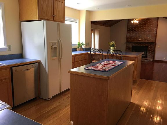 Wood floors; numerous cabinets and tremendous storage in kitchen; large breakfast counter, appliances remain. Bonus room upstairs for office, crafts, study room, exercise...you name it! Nice yard with lovely landscape. Lower level is ready for finishing.