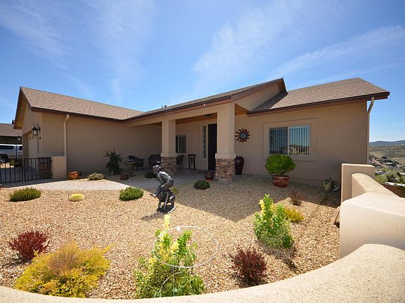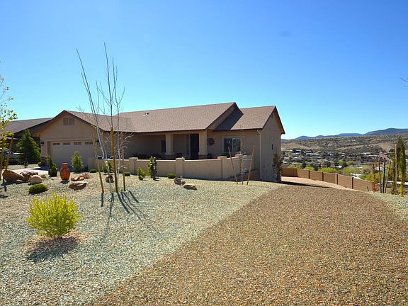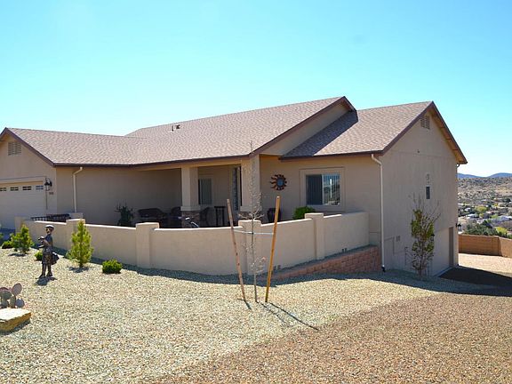 Views, Views, Views! Stunning Bradshaw & Mingus Mt. Views await from the charming courtyard entrance to this less then 2 year old home. This home features stainless steel appliances, Rustic Knotty Alder cabinetry, and beautiful granite countertops to finish it all off. The large great room features phenomenal MT. views and is open to the formal dining area & breakfast area. There is also a split bedroom floor plan. The master suite features a large walk-in closet, beautiful master bath with oversized tiled shower, garden tub, and granite counters. There is a 2 car garage on the upper level & an additional 2 car garage on the lower level with lots of storage!