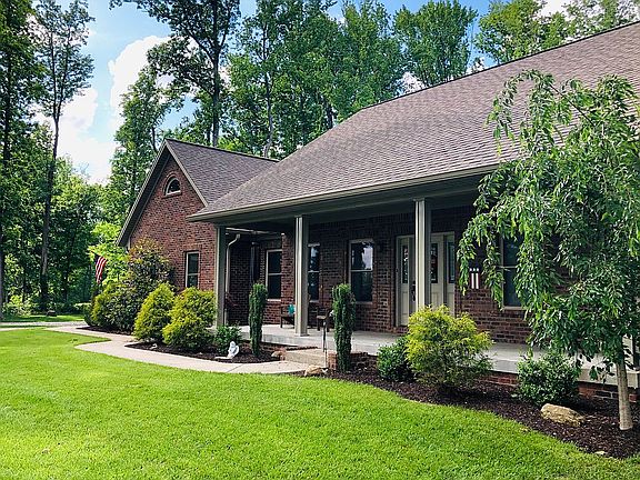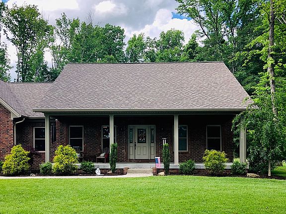 This home is MOVE-IN READY! The OPEN CONCEPT provides for a very spacious and highly functional kitchen with lots of cabinetry, granite counter tops with a beautiful waterfall edge, glass tile back splash, and a full complement of appliances. The kitchen island has a breakfast bar which serves as a third eating area in this main part of the house. The house has 9-foot ceilings and crown molding throughout! The main floor features a beautiful master bedroom with plenty of natural light in both the bedroom and the adjacent full master bath. On the main floor, the split floor plan offers two additional bedrooms on the other side of the house. The fourth bedroom in the basement has a large walk-in closet and a full-size egress window for natural light and outside access in case of an emergency. Additionally, the finished basement includes a full bath, storage/utility room, large open entertainment area, and finished storage space beneath the stairs. Approximately 1500 finished square feet in basement. The laundry room has lots of cabinetry, a utility sink and granite counter tops! Attached is a two car garage, and if that's not enough parking/storage space, you still have the 30x40' pole barn with a 20-foot ceiling to accommodate the basketball goal located inside. The pole barn also has an 8-foot lean-to the length of the barn. You can walk right out on the covered back porch, sit, relax and enjoy the peace and tranquility of your private backyard! Sq ft & rm sz approx.