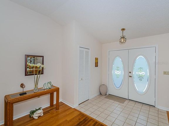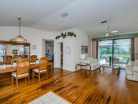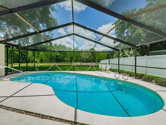 Beautiful 3 bedroom pool home with pond/conservation views in move-in condition. Spacious floor plan features formal living/dining rooms plus family room; remodeled kitchen open to family room and features dining nook plus snack bar and pass through to pool area, newer appliances and Staron countertops; split bedrooms - all with walk-in closets; master suite with adjacent updated bath with dual sinks, tub and separate shower; second bath has also been updated and has dual sinks and door out to pool area; inside laundry; sliders from living room, kitchen/family room and master bedroom lead out to covered lanai and caged pool area. Roof replaced 2006 and a/c 2010 (maintained regularly). Other extras/upgrades include cathedral/vaulted ceilings, engineered wood or ceramic throughout main living area and master bedroom, ceiling fans, in-the wall pest control system, sprinkler system, garage door opener and more. The South Pasco community of Southern Oaks is near Starkey Park and convenient to shopping and services and easy access to Tampa, Clearwater and St. Petersburg. Low HOA of $300 per year.
