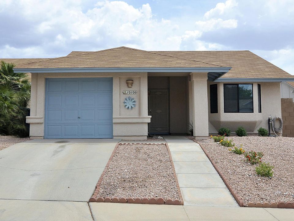 Pride of ownership abounds at this MOVE-IN READY 2 bedroom/2 bathroom freestanding SINGLE FAMILY HOME in desirable Reddington Hills. Bright, open floor plan w/vaulted ceilings & skylight in great room. Diagonally-set 20'' PORCELAIN TILE everywhere except BRs. More extras: french doors, ceiling fans, faux wood blinds, updated light fixtures and all appliances stay. NEW interior & exterior paint. Garage has built-in cabinets. The LARGE, PRIVATE BACKYARD is a true SHOW STOPPER featuring a covered gazebo with pond/waterfall, 2 flagstone patios, pretty planters PLUS updated irrigation and yard lighting. Short walk to COMMUNITY POOL. Close to Davis-Monthan, Raytheon, I-10, dining and shopping. Hurry...homes in this community go quickly, and this is one of the finest!