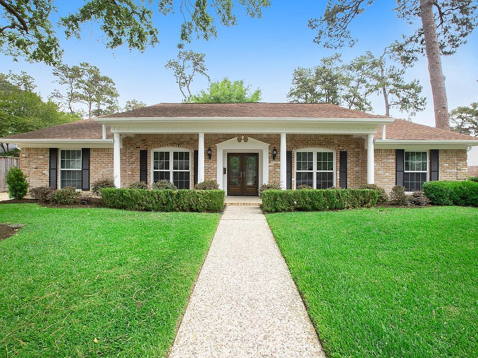 Absolutely beautiful colonial ranch in the desirable north section of Briargrove Park! Classic floorplan from the formal entry with beveled glass double doors, formal living room, dining room, family room with wood burning/gas log fireplace and a beautifully updated kitchen and breakfast room. There's even a nice Guest Suite behind the 2 car garage that features a living area, bedroom, kitchen area and bath! Well proportioned bedrooms have wood floors and nice closets. The home features Pella dual paned windows and recessed lighting. The kitchen has custom cabinetry with pull-out shelving, tumbled stone backsplash, granite counters and stainless appliances including a beverage cooler. Half bath in utility room area! You will enjoy the large, beautiful back yard from a covered porch or sunny patio! This is a fine example of this style of home that you do not want to miss!