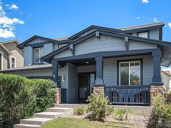 Come see this well cared for home sitting on a spacious corner lot in Commerce City. This home boasts 3 bedrooms, 2 1/2 baths, A gas fireplace in the Living Area on the main level and an unfinished basement ready for your own personal touches. Off the Dining area is a great patio looking on to the backyard and yes, there are Mountain Views from the second floor! The primary suite is abundant including a 5 piece en-suite featuring two sinks, soaking tub, large walk in shower and a walk-in closet. Welcome Home, The Tradition Neighborhood awaits you, featuring a Clubhouse, pool, park, gym and walking trails and a tennis court, and basketball court. Ideally situated near DIA and a short drive to downtown. New roof in 2020, new garage door motor and new hot water heater in 2024 and a water filtration system in the kitchen sink! This well-maintained home is a must see!