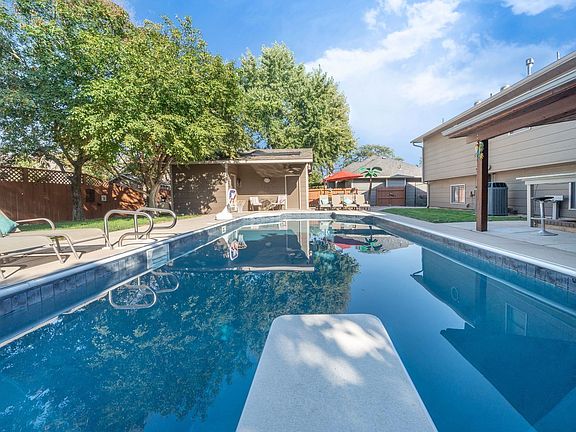 Did you miss out on getting an IN-GROUND POOL this year, here is your opportunity to have one for next year!! This 4 bed, 3 bathroom home is tucked back in a quiet neighborhood with mature trees in the Maize School District. Perfect size for a family and a great space to entertain. This home is move-in ready with new interior paint on the walls and trim, new wood and tile flooring, wooden accent walls added, and new pool cover, this house has been completed from top to bottom. As you walk into this home you'll notice the 2 story entryway and large dining, kitchen and formal living room space. The kitchen boasts granite countertops, pantry, and stainless steel appliances. Upstairs the master bedroom is spacious with 2 closet areas and a bathroom with tiled shower and his and hers sinks. There are 2 other bedrooms and another full bathroom conveniently located upstairs. Downstairs you will find the fourth bedroom and a full bathroom convenient for guests, the laundry room, and another living room with gas fireplace that leads out to the amazing backyard. The basement includes a pool table and equipment, a wet bar with a mini fridge, and extra storage. LET'S TALK ABOUT THAT BACKYARD! Fully fenced with an added concrete driveway that leads to a DETACHED OVERSIZED ONE CAR GARAGE and yes the PALM TREE is staying with the house. Attached to the garage is a pool bathroom for the in-ground pool, a large granite bar, a covered seating area set up to watch TV wired for speakers. This backyard is an oasis to come home to everyday! This house has so much to offer and is priced to SELL. Set up your appointment to see this one before its gone!!