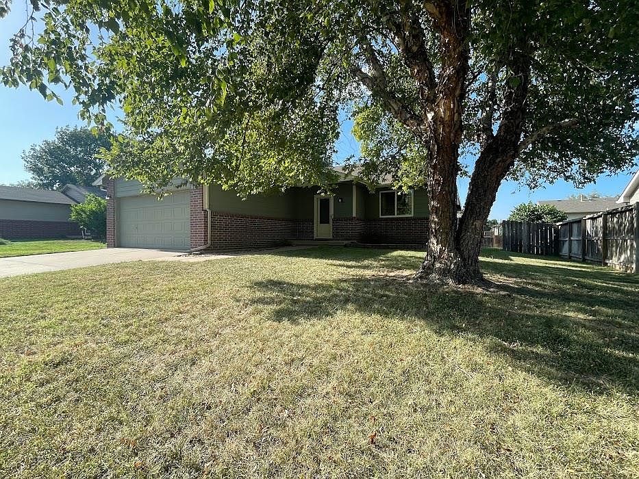 Buyers deal for you! Seller is paying $2,000 Closing costs to make your deal sweeter! Charming family residence in Goddard School District with NO HOA!! Searching for the ideal family home within the coveted Goddard School District? Your quest ends here! This splendid 4 bedroom, 3 bathrooms eagerly awaits your presence. Step into a world of warmth and appeal with true hardwood floors throughout the main level. With a two car attached garage featuring extra shelving storage, makes for convenience is at its best! Unwind by the inviting brick fireplace, while enjoying a cozy evening with loved ones! Rain or shine, the covered patio beckons, offering a breath of fresh air and tranquility. Enclosed by wood fencing, the backyard ensures privacy, providing a serene haven for relaxation. The sprinkler system simplifies lawn care and landscaping maintenance. The spacious master bedroom suite boasts "his and her" closets and a well appointed en-suite bathroom, streaming your daily routines. Entertain in the fully finished basement with its expansive family room with exquisite ceramic tile flooring, surround sound speakers, and a wet bar. An additional bedroom with luxury vinyl wood flooring, along with the third bathroom for your guest haven. Basement also has extra abundant storage space for tidy organization. Move in ready and available for swift occupancy. Meticulously cleaned and poised for new ownership, this property is ready to be personalized by you and your family!! Don't miss this remarkable opportunity in Goddard School District with NO HOA obligations!! Updated countertops throughout adds luxury and style, siding replacement, and repainting in progress . Contact us promptly to schedule your private viewing and secure this family haven before it's gone! $2,000 towards closing cost will make it easier for you to get in your new home sooner, and buy that new furniture you want!! (Market time is due to remodel and tenants occupancy, vacant, complete and ready for quick close currently)