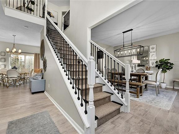 You will realize this house is special the minute you pull in the drive. Front elevation has been transformed w/shake shingle siding, stone accents, cross beam peaks & carriage lights. New landscaping adds the finishing touch to the curb appeal. Inspired elegance greets you when you open the front door. Two story foyer & wrought iron staircase shimmer under beaded chandelier. Candelabra style wrought iron light in dining room compliments the staircase detail. Artistic blend of subtle grays & soft whites envelope you as you move from room to room. Luxury vinyl plank flooring flows thru out the 1st floor. Gourmet kitchen is centered by Quartz waterfall island. 42" Espresso cabinets, glass back splash, Hi-end Kitchen Aid appliances, gas stove w/pot filler & microwave w/convection oven. Two story great room has fireplace & unique plank accent wall. 1st floor powder room has classic pedestal sink & etched mirror. New textured carpet on 2nd floor. Glamorous master suite w/intimate seating area & walk in closet w/Calif Closet System. Master bath offers soaking tub w/shower, double sinks, large tilting mirrors & detailed tile work. No detail has been over looked. Every light fixture, hinge, knob & fixture have been replaced. Lower level Rec Rm plus bonus room for office or gym & large storage area. 1st fl laundry w/Samsung stacking washer/dryer. Wooded half acre lot affords privacy with no visible neighbors behind you. Stamped concrete patio complete with 5-6 person hot tub.