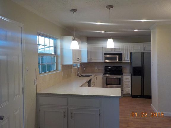Must see. NO FLOOD During Harvey. New tile flooring through out the house. Both bathroom have been redone. New Central AC and Heat. New door and trim. All NEW double pane windows recently replaced. New ceramic tile trough out shower and bathtub walls. All new light fixtures. Ready for new owner. Fresh paint inside and out.
