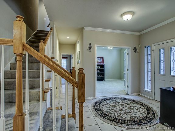This is a great home on a corner lot located in an amazing neighborhood in the heart of Owasso. This home is a 4 bedroom/2.5 bath/3 car garage with a true office, a game room upstairs, and a 5th bedroom located behind the game room. This property sits on the corner of a cul de sac with side loading garages. It has the perfect outdoor entertaining space with a large deck and view of the golf course. It has built in equity and priced to sell. Come see it before its gone. Room behind game room is not included in square footage.