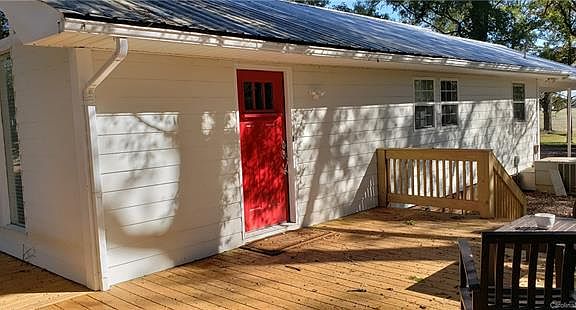 ~SO CHARMING & PRIVATE~ Cottage in the country overlooking large field. This home has been upgraded with modern decor touches. Current owners made $1000's in improvements including: deck, removed popcorn ceiling, new lights, painting, granite, new vanity, refinished hardwoods, new entry door & more! Large master bedroom with closet and gleaming hardwood floors. Smaller bedroom would make great office or 2nd bedroom. Large open bathroom with new vanity and tile floors. Kitchen has been updated to include painted cabinets, granite counter tops new lighting & lots of light. Large dining area and great room are vaulted and surrounded by expansive windows. Tin roof & large workshop/garage for extra storage and a large carport. The towering trees are perfect shade for the wrap around deck. Enjoy the country and not that far out of town.