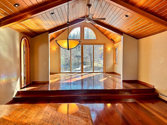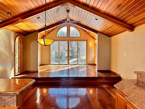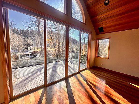Escape to the heart of the Sierra Mountains and live just steps from the Truckee River in this bright and peaceful upstairs one-bedroom apartment. Combining modern comfort with breathtaking natural beauty, this home offers the perfect balance of mountain tranquility and downtown convenience. Wake up to stunning views, unwind by the river, and experience the lifestyle you've always dreamed of. Natural light pours through the sliding glass door in the living room and the picture window in the bedroom, creating a warm, sunlit space that feels like you're living in a tree house. The spacious bedroom accommodates a king-size bed, with plenty of room for a cozy sitting area. The picture window in this room makes it the ideal spot for morning yoga or a peaceful afternoon stretch. A custom-built closet provides ample space for organizing your seasonal wardrobe and personal belongings. The living room, dining area, and kitchen feature beautiful hardwood floors, while the massive bedroom is finished with soft carpet to greet your feet every morning. The bathroom is designed with hand-selected tiles that capture the beauty of nature, while the walk-in shower provides a soothing oasis after a day on the hill or exploring local trails. If you need more relaxation, the soaking tub will leave you feeling rejuvenated and ready for the next adventure. The kitchen is a chef's dream with stainless steel appliances and ample counter space for all your favorite cooking tools. A stylish island bar is perfect for entertaining guests while you prepare meals. The kitchen also includes a closet with arched double doors, ideal for storing cleaning supplies and outdoor gear. Plus, a stacked washer and dryer offer added convenience. Step outside to the picturesque backyard, perfect for enjoying sunny afternoons by the river or hosting gatherings with friends. Professionally maintained by a lawn care service, the backyard is shared with your downstairs neighbor. For added convenience, there's one designated parking spot right by your front door. You'll never miss the first chair with the road being plowed by the town and your vehicle just steps away. Located within walking distance of Truckee's finest restaurants, shopping, and year-round events, this apartment also offers easy access to Lake Tahoe, just a 15-minute drive away. Whether you're hiking, mountain biking, or skiing, the surrounding area is packed with outdoor adventures just moments from your door. Embrace the mountain lifestyle and make this stunning home yours today. Gas will be in tenants name. The power bill will be split 50% at the end of each month.