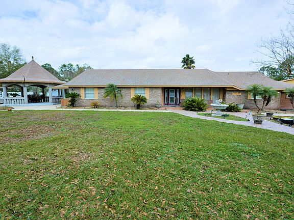 This estate is on a 4.50 acre lot with 4 BR/3 Full Baths and 2 half bath brick home. 5 + Car Garage, 2 huge carports that can hold at least 15- 20 cars plus 2 carports for an RV, 18 wheeler, boat or whatever you may have. It offers a movie theater room, game room, Gazebo, Hot tub, summer kitchen, 2 story kids playhouse and a doghouse the size of a bedroom with fenced in area. This property is gated and has its very own pond. We even left you room to bring your horses, goats, chickens and cows. NO HOA and NO CDD fees to pay. It is truly a one of a kind property. Don't Delay, Call Today for your private tour.