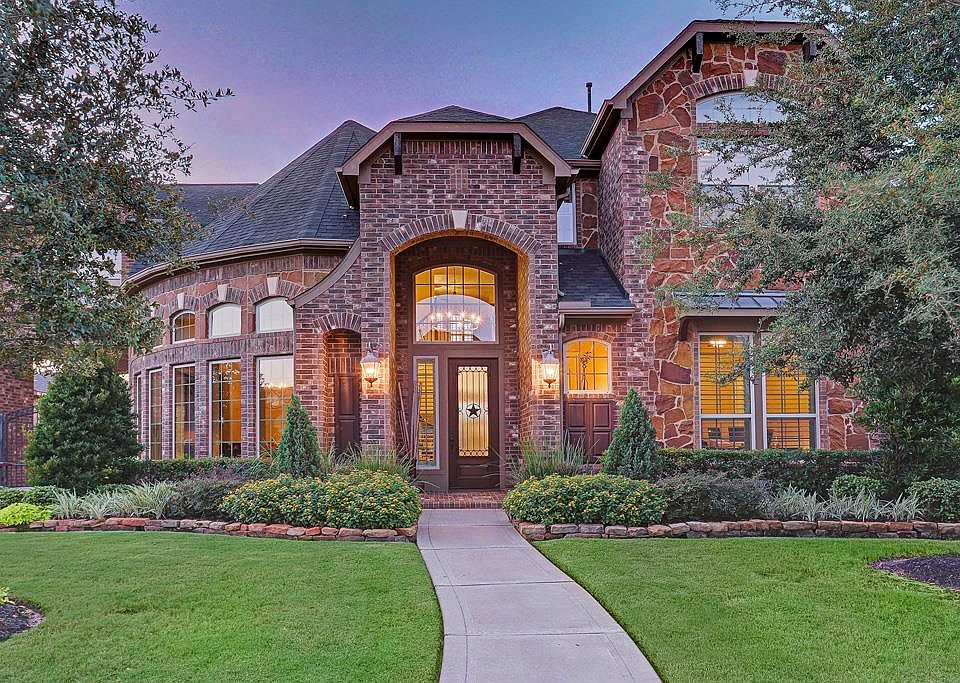 Beautiful Trendmaker Home. 2 story,4 bedrooms,3.5 baths,media room, gameroom,2nd master bedroom/bath/sitting room upstairs,3-car detached garage. Kitchen has granite countertops,travertine backsplash,island,stainless steel appliances including double ovens; dining room with wine niche; study w/French doors; hardwood flooring &upgraded carpet throughout home; water softener; Plantation shutters; sprinkler system; Energy Star; covered patios in backyard. Great neighborhood amenities &KISD schools!